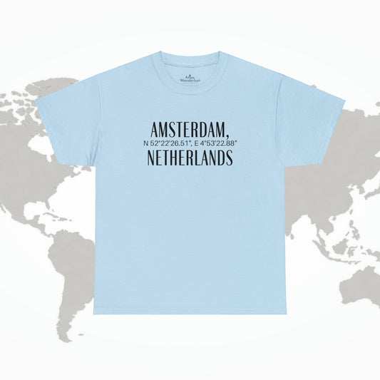 Amsterdam Netherlands Coordinates T-Shirt, Modern Holland Tee