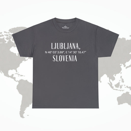 Ljubjana Slovenia Coordinates Tee, Modern Travel Tee