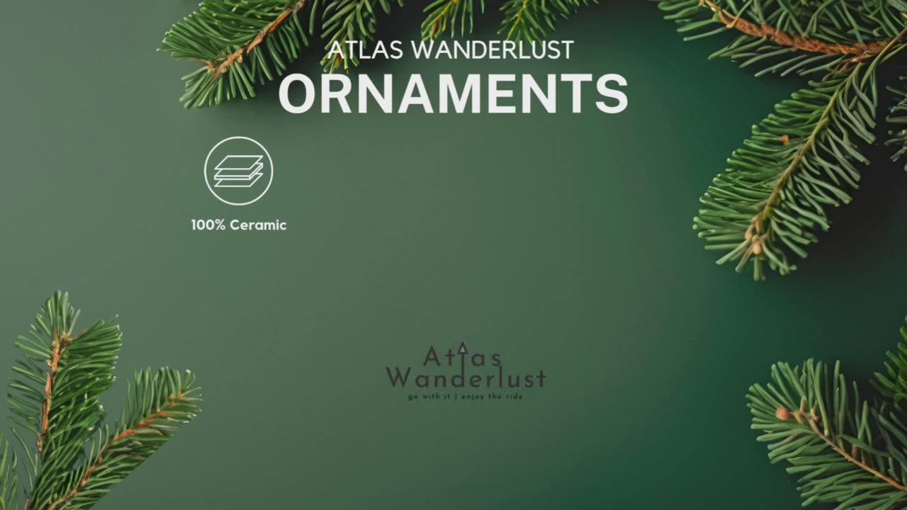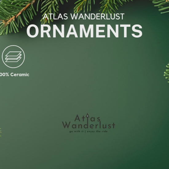 Celebrate any occasion with these original Atlas Wanderlust travel-themed ornaments. Each 3" ornament features items specific to its location like map, flag, skyline, bird, flower, greetings, food, landmarks, etc. Each ceramic ornament is designed with vibrant colors and a glossy finish, has double-sided print for maximum charm, and includes a gold a hanging string.